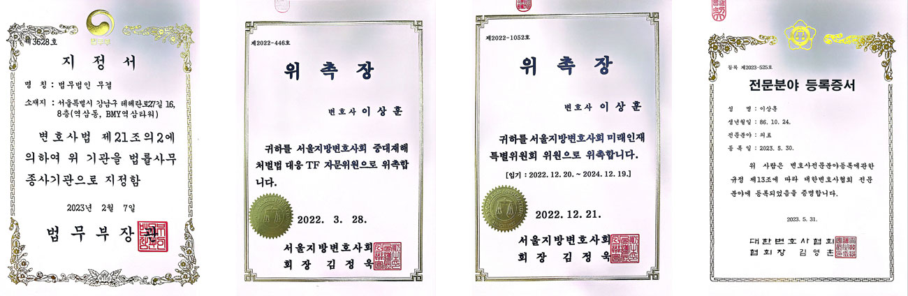 - 현) 서울지방변호사회 중대재해처벌법 대응 TF 자문위원
